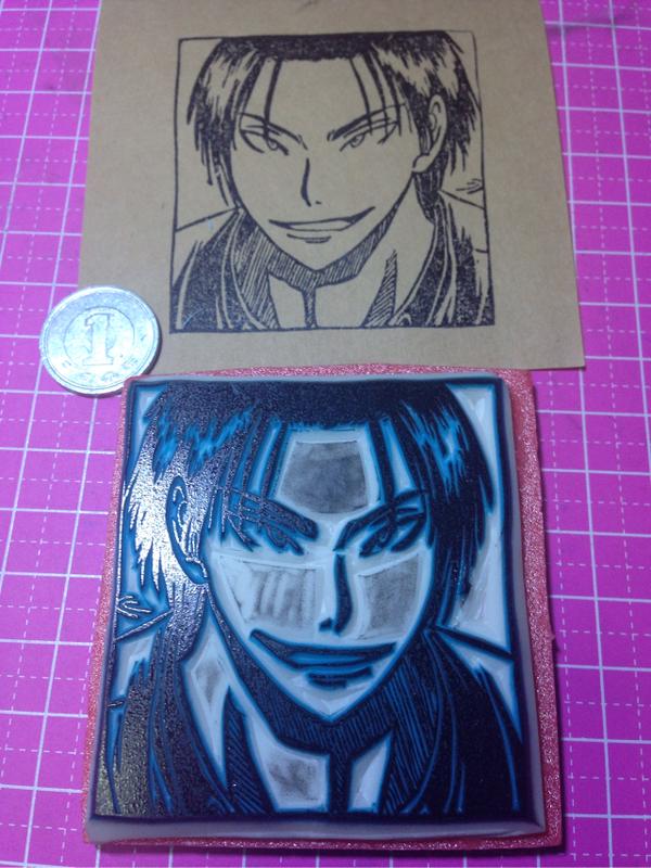今回使用しましたのは、セリアの消しゴムはんこなので、彫刻刀で先に青い面を削りましたが、 これよりもやわらかいもの(例:ダイソー製、ほるナビ、はんけしくんetc)はこの一手間省いてそのまま削っちゃえます。(ほるナビ普通タイプではできました。)